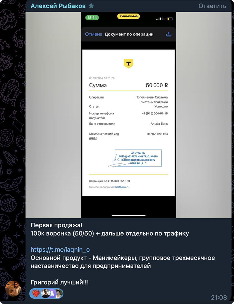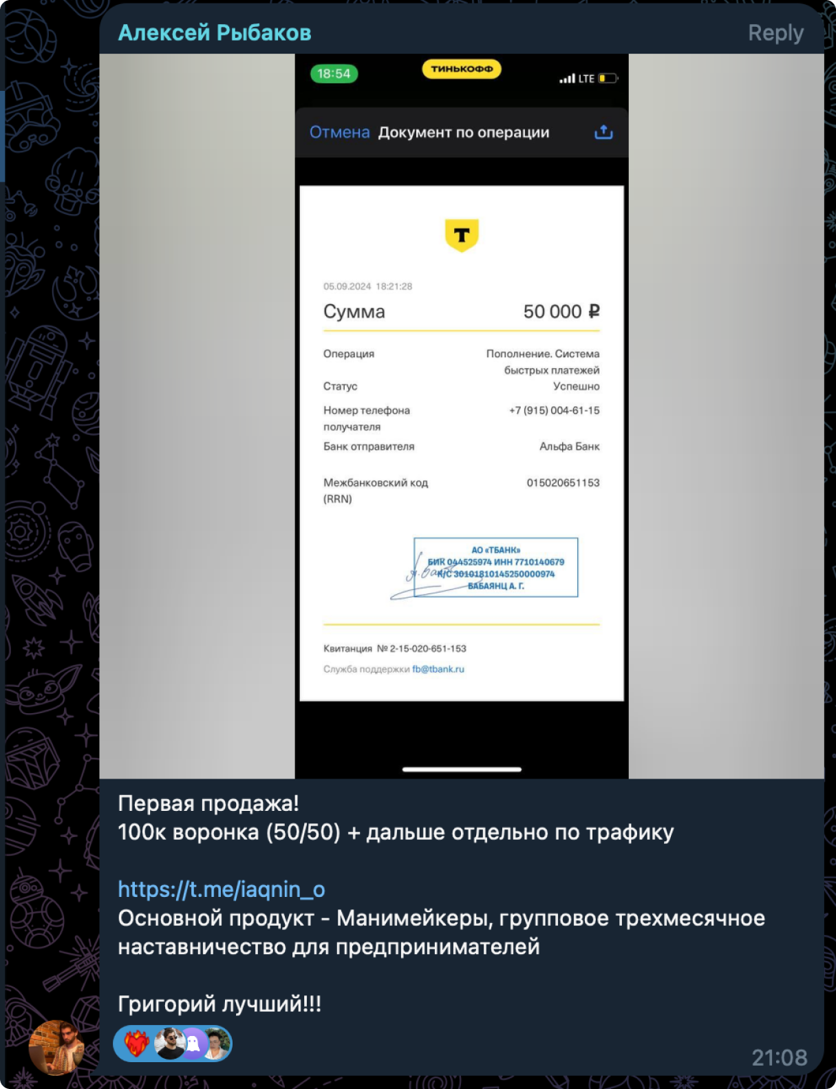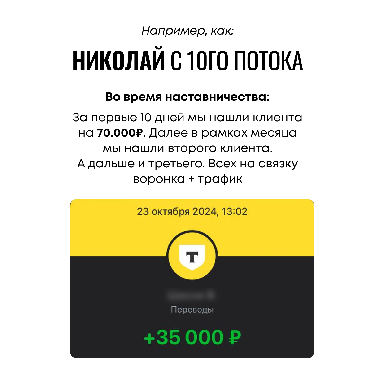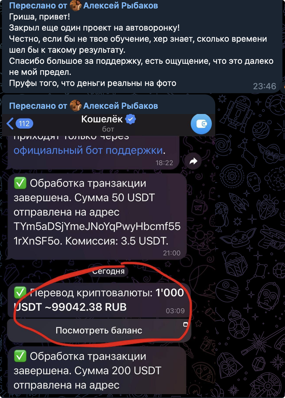 Это лишь часть автоворонки, чтобы показать общий принцип работы. Такую автоворонку в связке с трафиком из TGAds Алексей продал за 100 000 рублей.