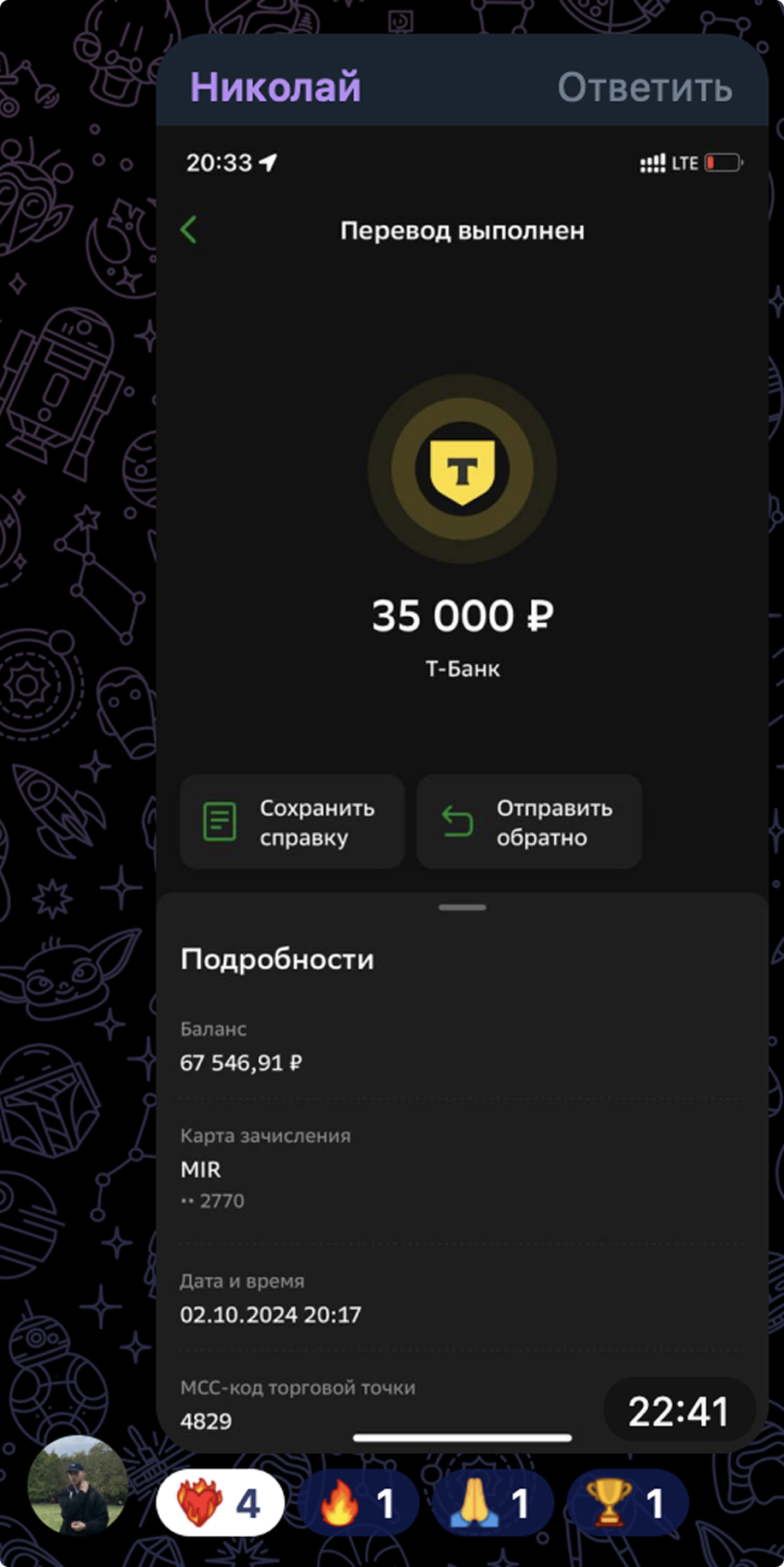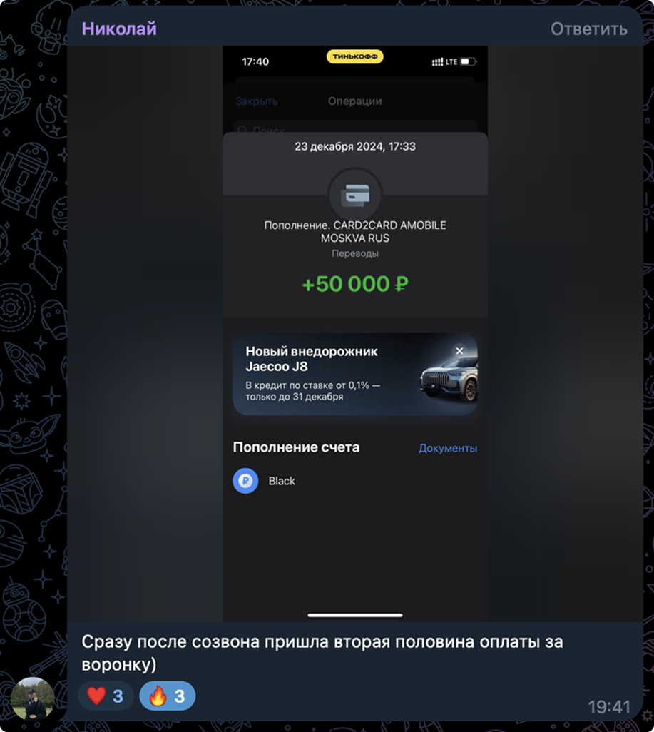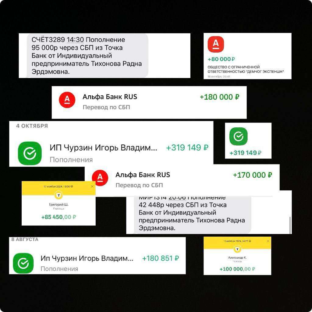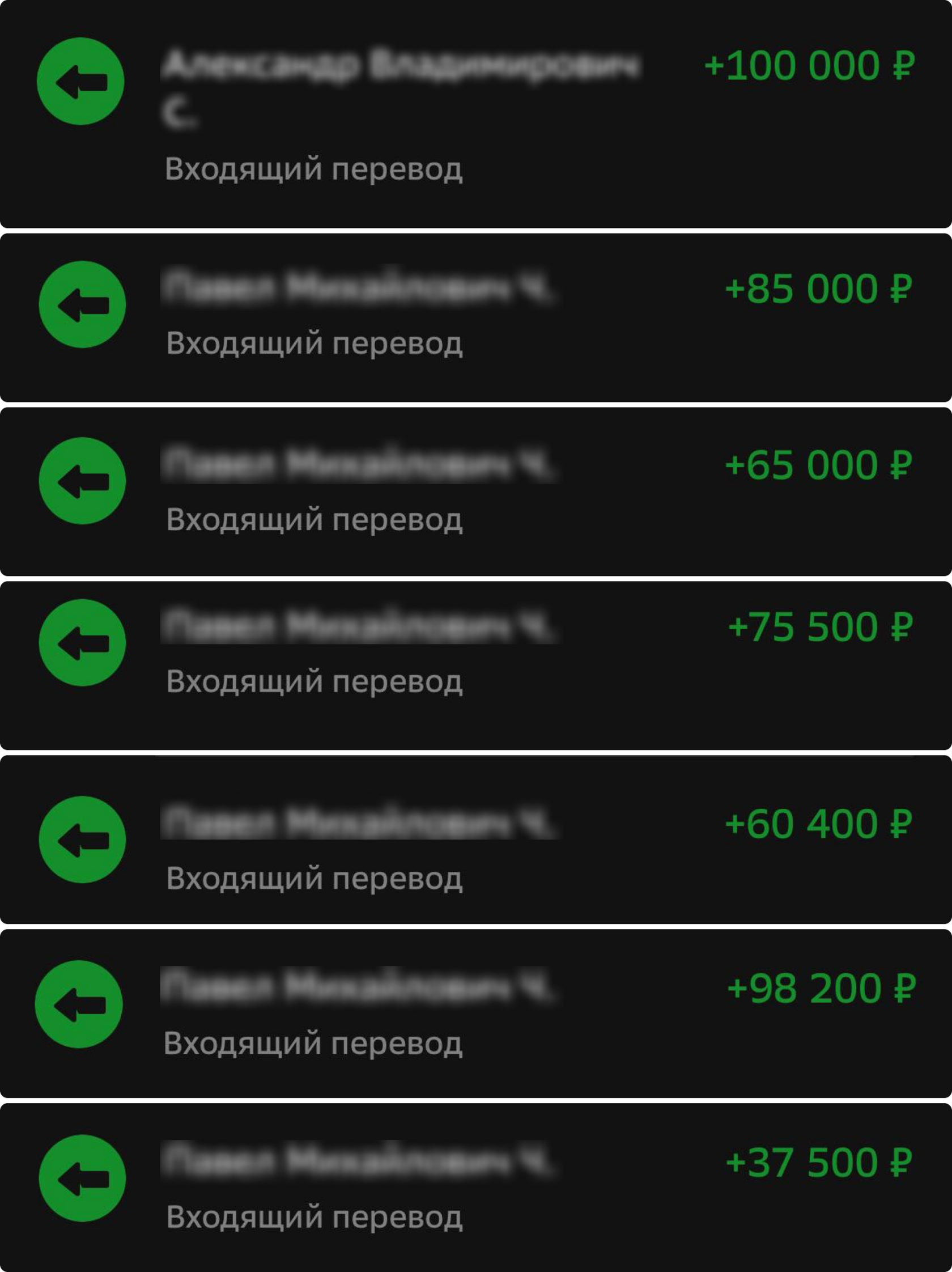 Ниже часть скринов переводов от клиента, с которым Лиза сделала запуск на 5 млн рублей.