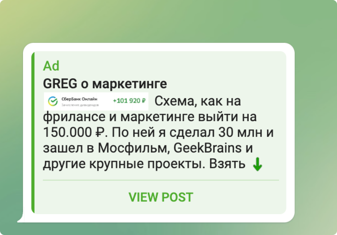 TGAds — это внутренняя реклама Telegram. Сначала собираешь каналы конкурентов, настраиваешь рекламу, и она показывается подписчикам этих каналов. Деньги на рекламу выделяет клиент.