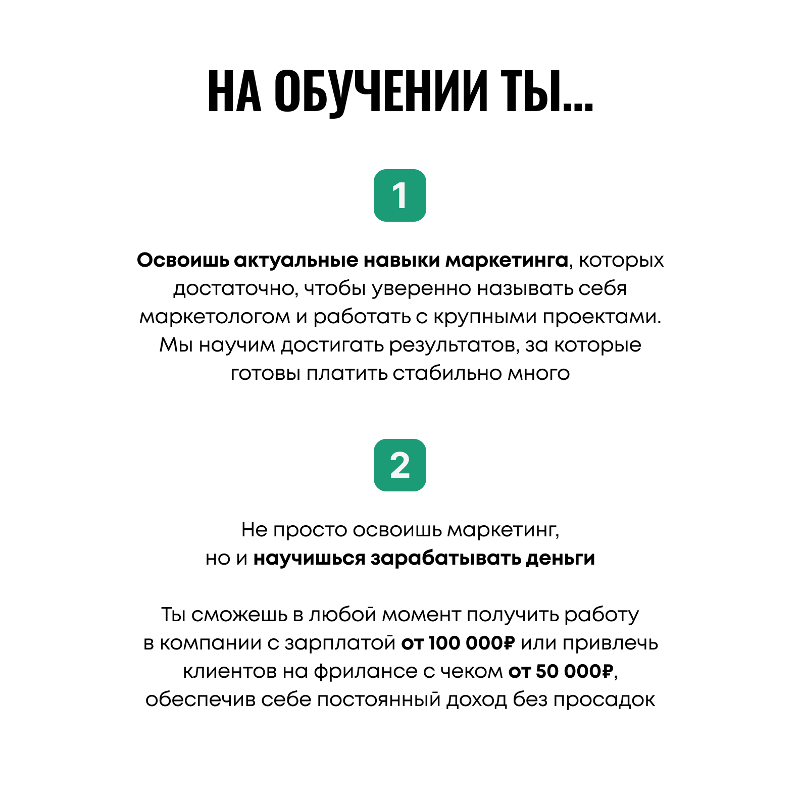 Вместо отдельного трафика или сайта ты предлагаешь полный маркетинговый цикл: от стратегии и привлечения клиентов до создания контента и управления и создания команды.