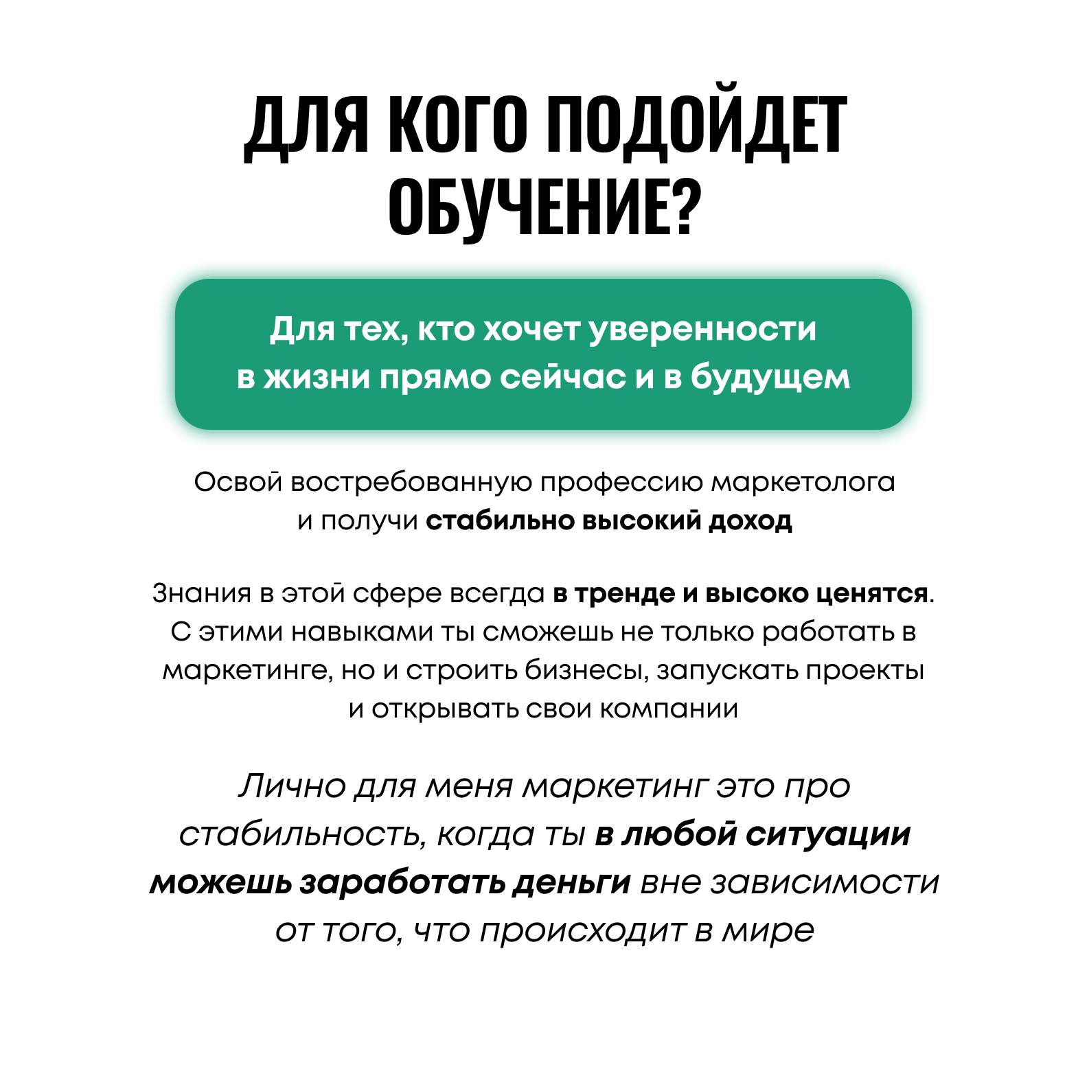 ты предлагаешь полный маркетинговый цикл: от стратегии и привлечения клиентов до создания контента и управления и создания команды.
