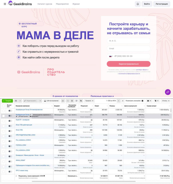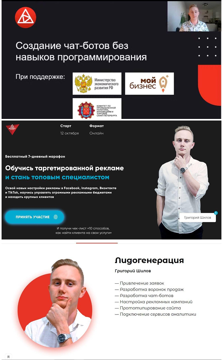 В Мин. эконом развития я занимался привлечением людей на онлайн мероприятия, а также был спикером и главным маркетологом проекта. Для них я делал связку: трафик + автоворонка