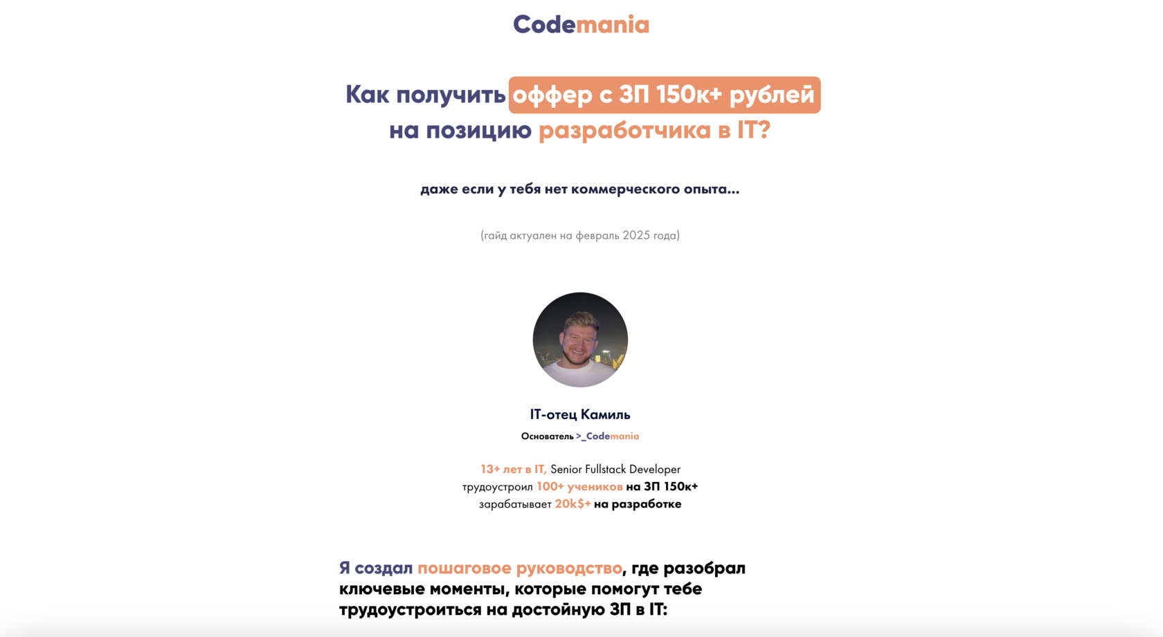 И по такой же связке зашел в GeekBrains (топ онлайн-щкола СНГ)